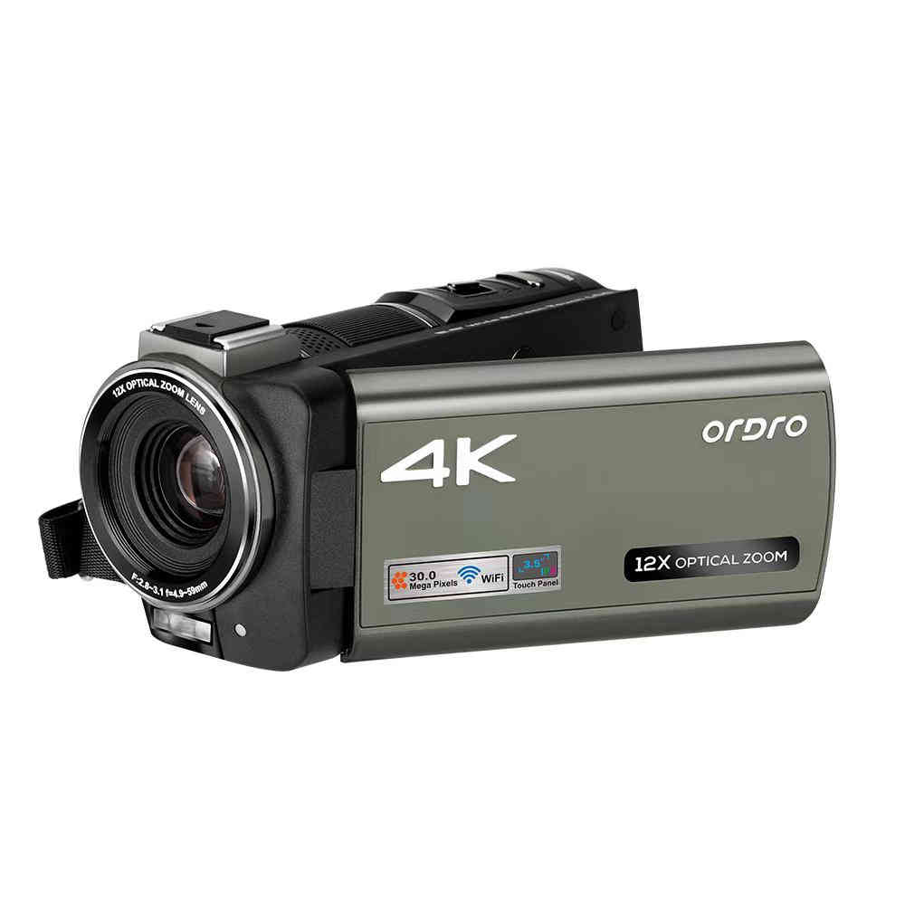 Caméra Vidéo 4K Professionnelle Ordro – Zoom Optique 12X, Microphone Externe, Lampe LED Vidéo, WiFi, Caméra Vlog Haute Définition