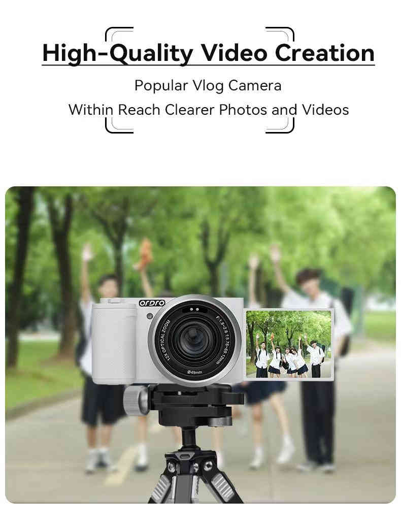 Grâce à sa structure compacte et professionnelle, la caméra Ordro 4K est parfaite pour une utilisation quotidienne, que ce soit pour les vidéos, les photos, les voyages ou les projets créatifs.