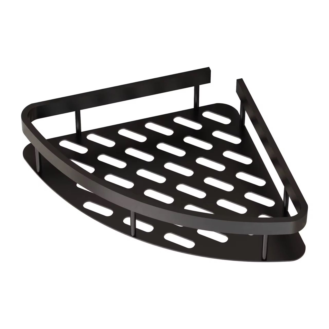 Étagère d’angle murale en aluminium, design moderne et installation sans perçage, parfaite pour optimiser le rangement.