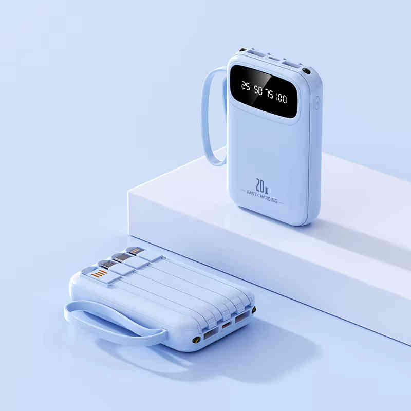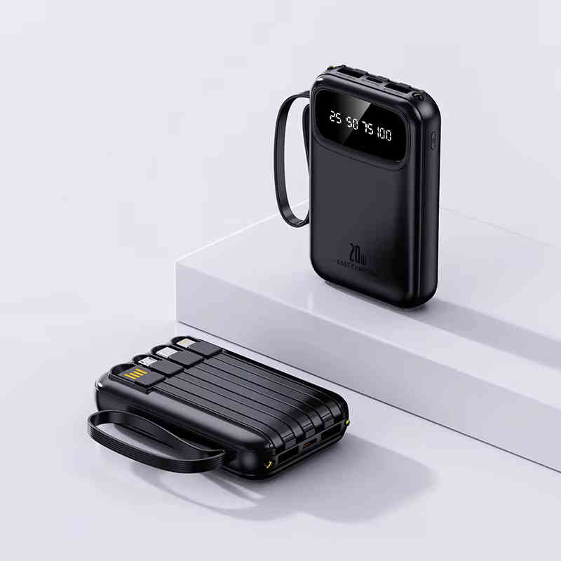 Batterie externe 10 000 mAh avec charge rapide 20W, écran d’affichage LED et câbles intégrés. Parfaite pour recharger rapidement smartphones, tablettes et accessoires où que vous soyez.