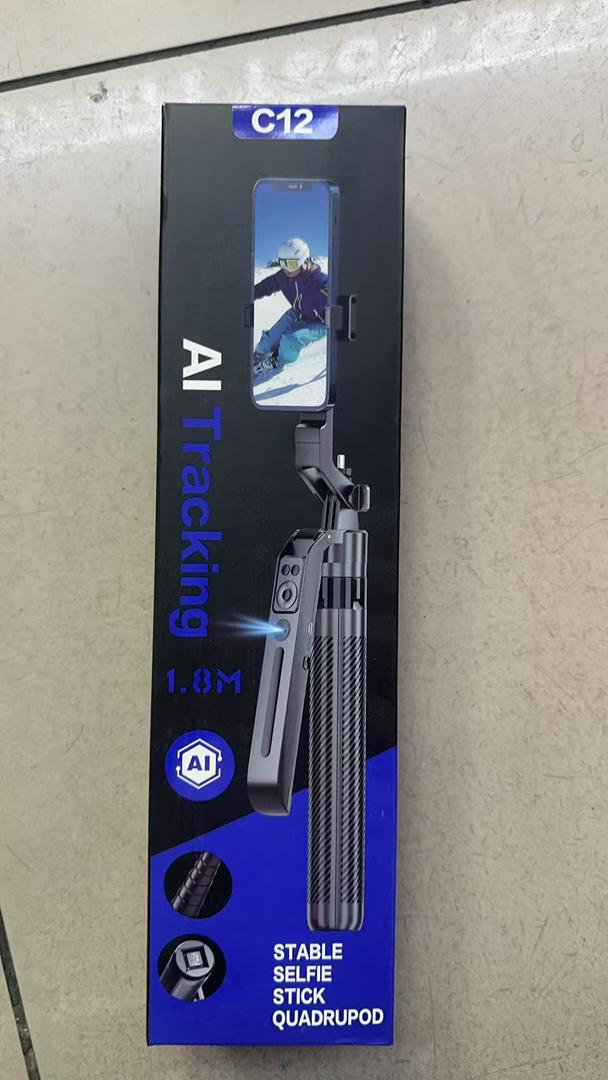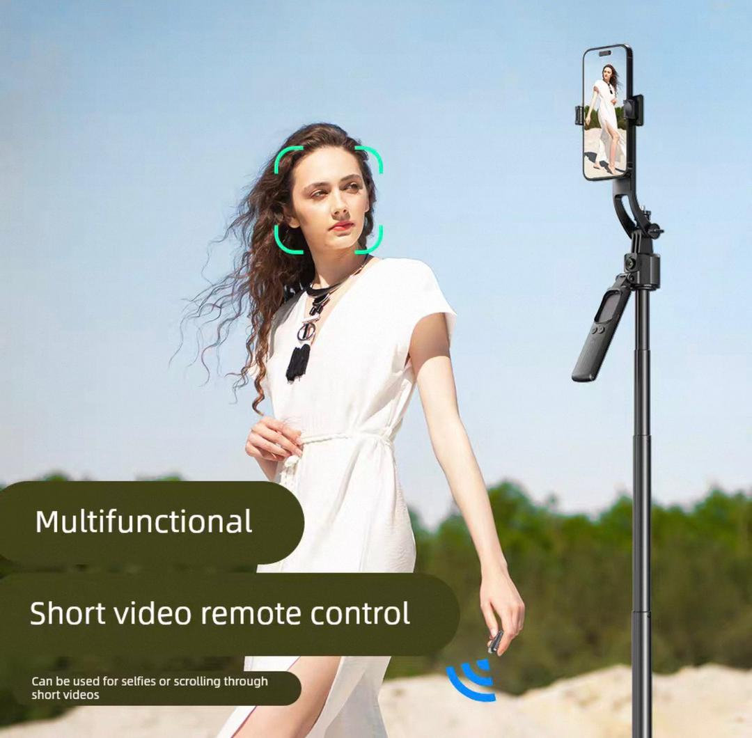 Trépied selfie avec suivi AI et Bluetooth. Idéal pour vidéos, live et photos professionnelles.